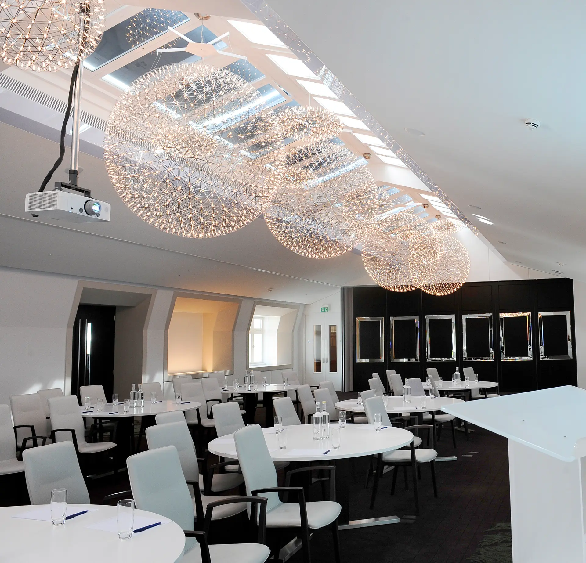 Our two Penthouse State Rooms, along with the adjoining Rooftop Terrace, offer the ideal setting for professional events and lively evening celebrations. These versatile spaces seamlessly transform from a daytime conference venue to a stylish dinner, reception, or vibrant party complete with a DJ and dancefloor by night.