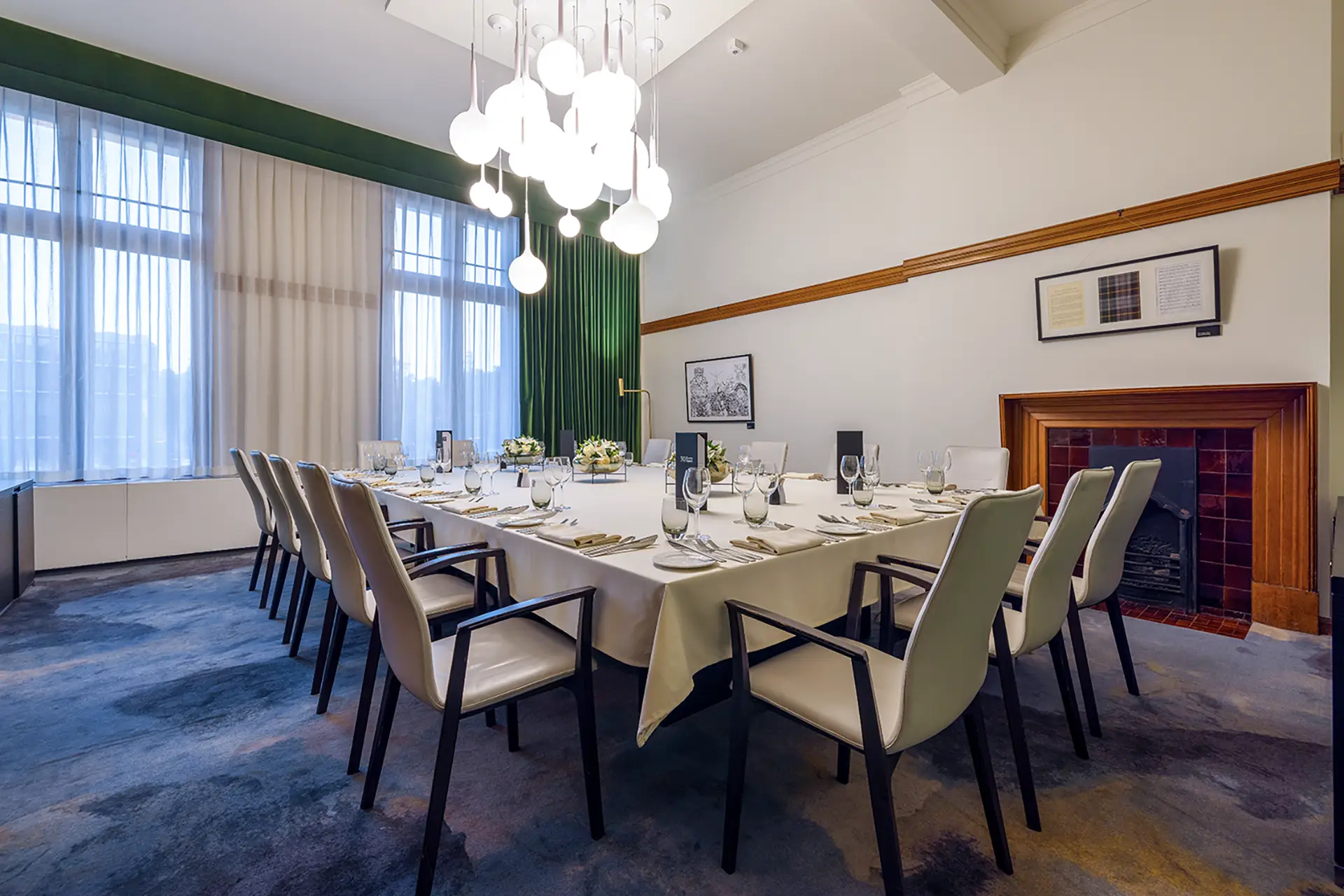 Has a large central oak desk, popular for both boardrooms and private dining events.